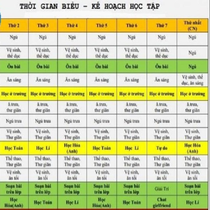Các em học sinh có thể xây dựng thời gian học hợp lí giống như mẫu trên.