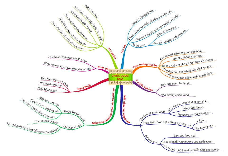 Sơ đồ tư duy là phương pháp được nhiều người sử dụng vì tính hiệu quả mà nó mang lại. Nội dung sẽ được cô đọng lại thành những từ khóa khác nhau, từ khóa chính sẽ phân nhánh ra từ khóa phụ. và cứ như vậy, kiến thức của cả một tác phẩm văn học sẽ được gói gọn trong một trang giấy.
