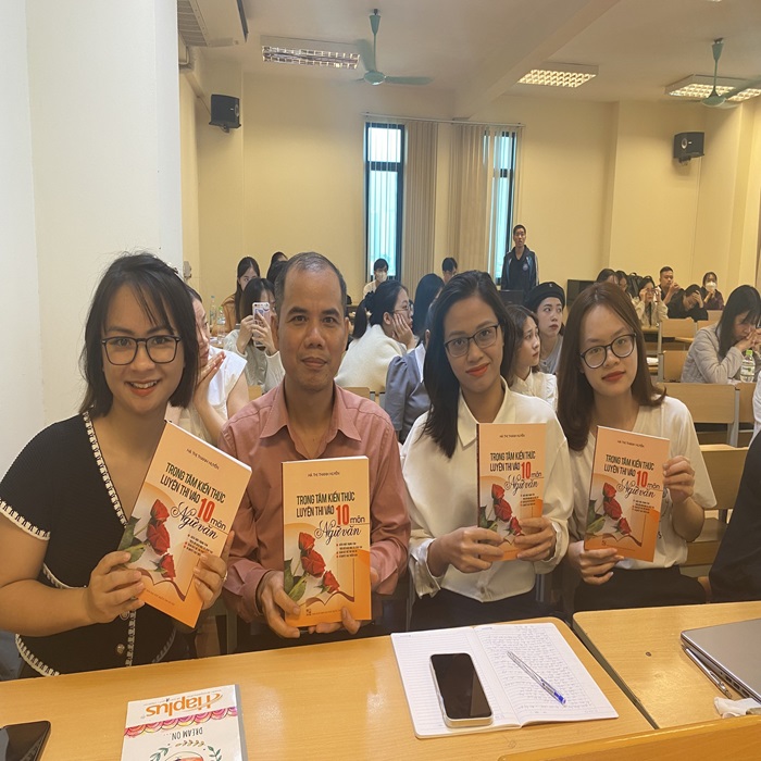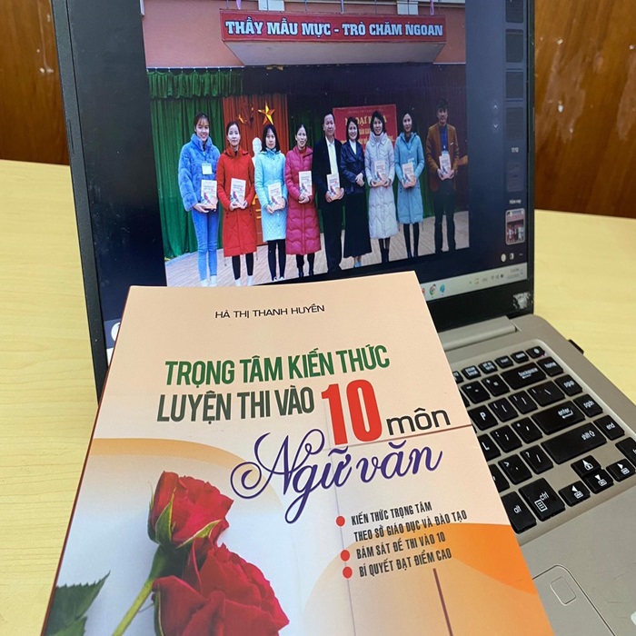 Cuốn sách trọng tâm kiến thức luyện thi vào 10 môn Ngữ văn được cô Hà Huyền tặng thầy cô Ban giám hiệu trường THCS Điêu Lương
